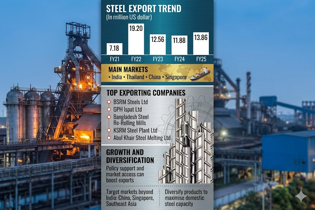 Sector insiders noted that despite Bangladesh's expanding domestic steel capacity, export potential remains underutilised due to limited product variety and overdependence on a single market.