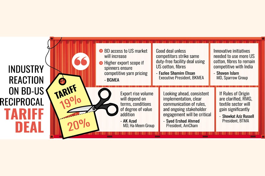 The Bangladesh-US agreement that reduces the reciprocal tariff and introduces duty-free facilities for using American inputs to manufacture garments will boost local apparel exports to the country's single-largest destination, industry leaders say.